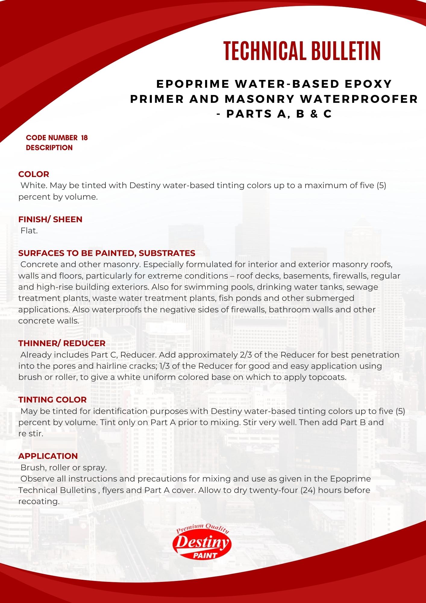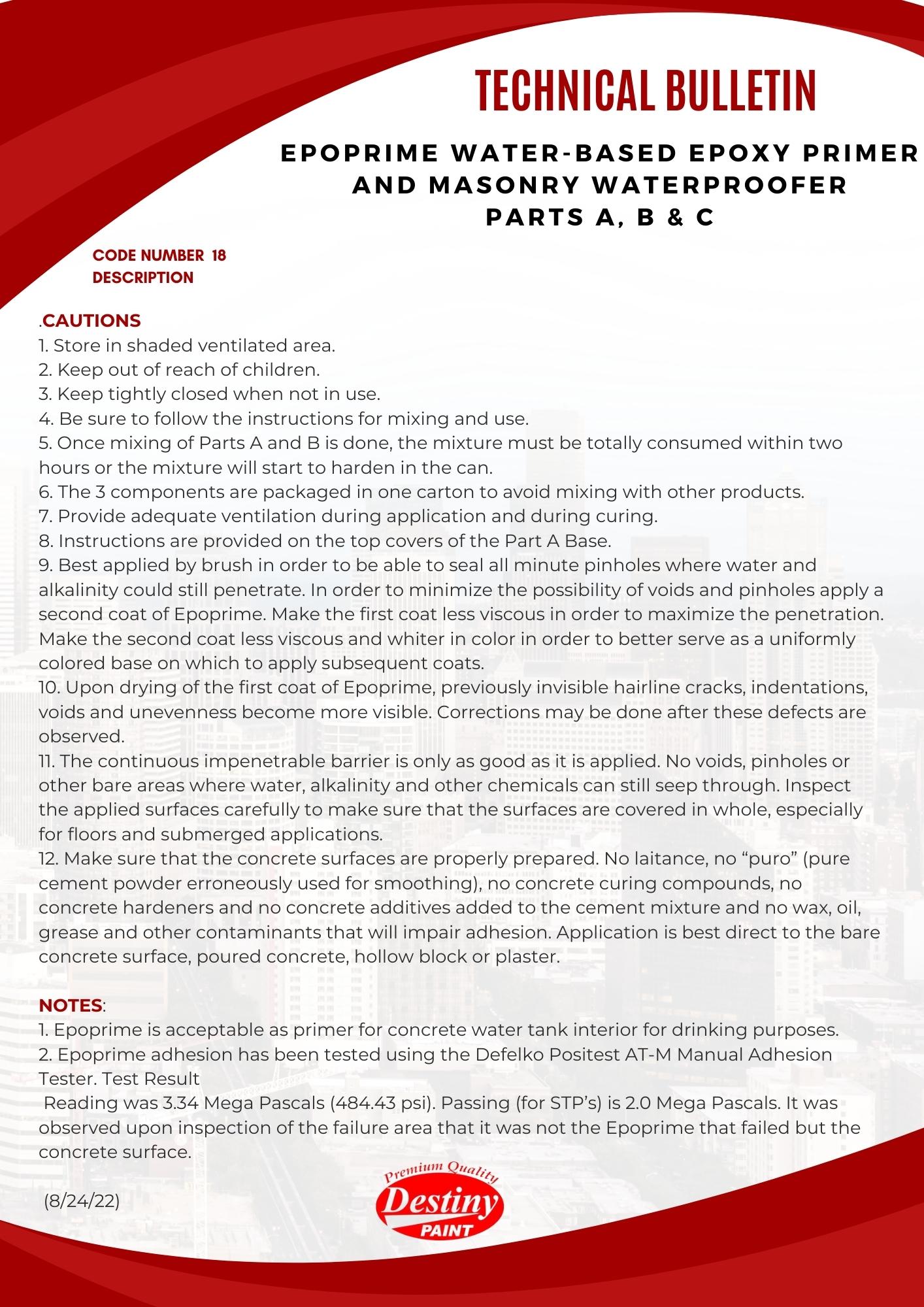 For TECHNICAL BULLETIN requests please email to technical@destinypaints.com